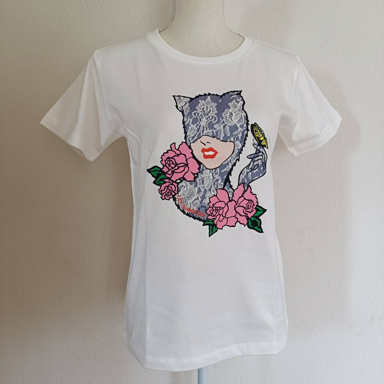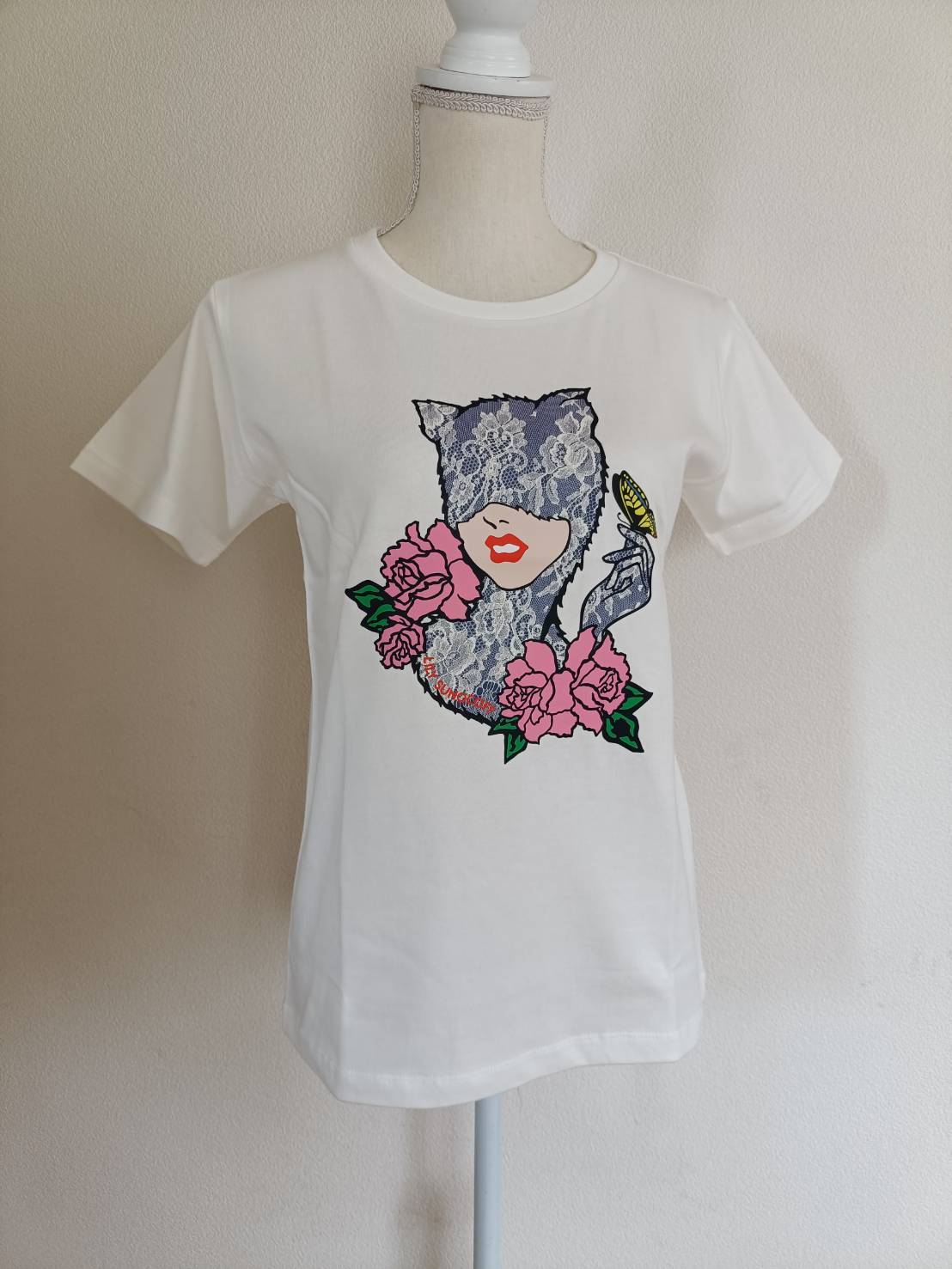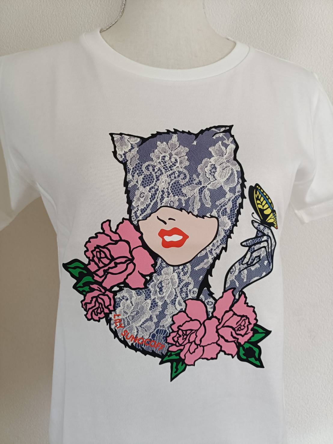 ホワイトレース×ピンク薔薇に、ラベンダーが可愛いTシャツです♡ベーシックなバニラホワイトベースも登場いたしました!