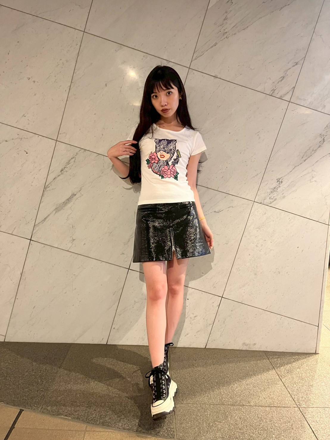 フィット感があるフライス素材で、ひときわフェミニンな印象のタイニーTシャツ♡カジュアルになりすぎず、ボディラインを綺麗に見せてくれます。