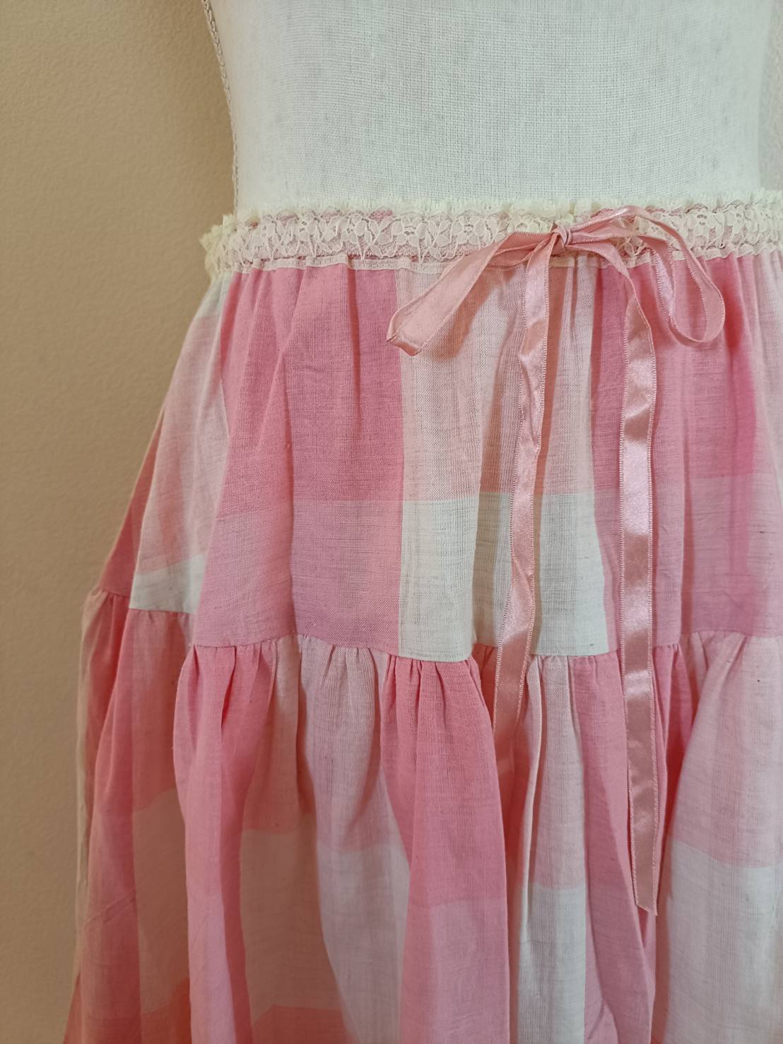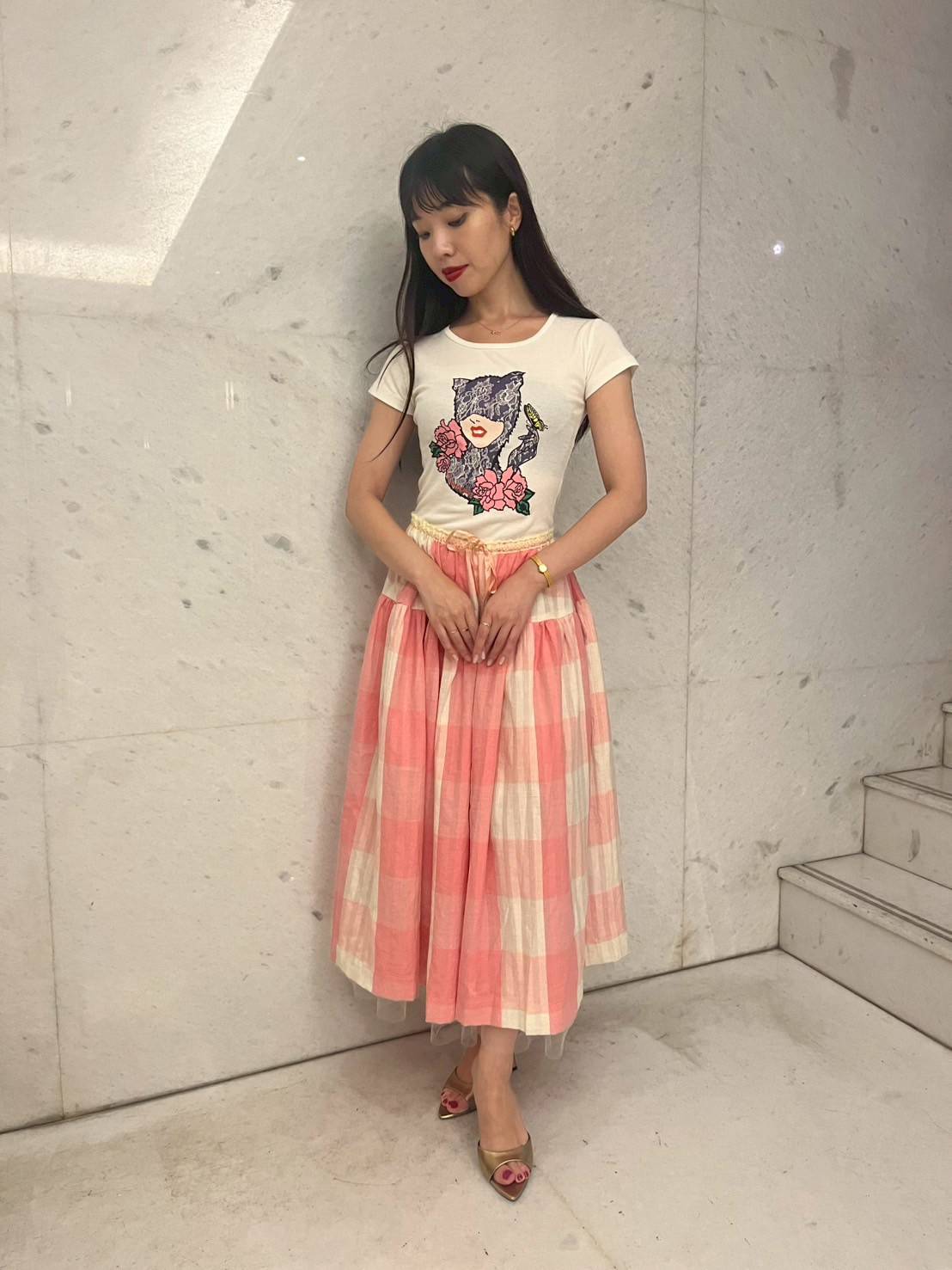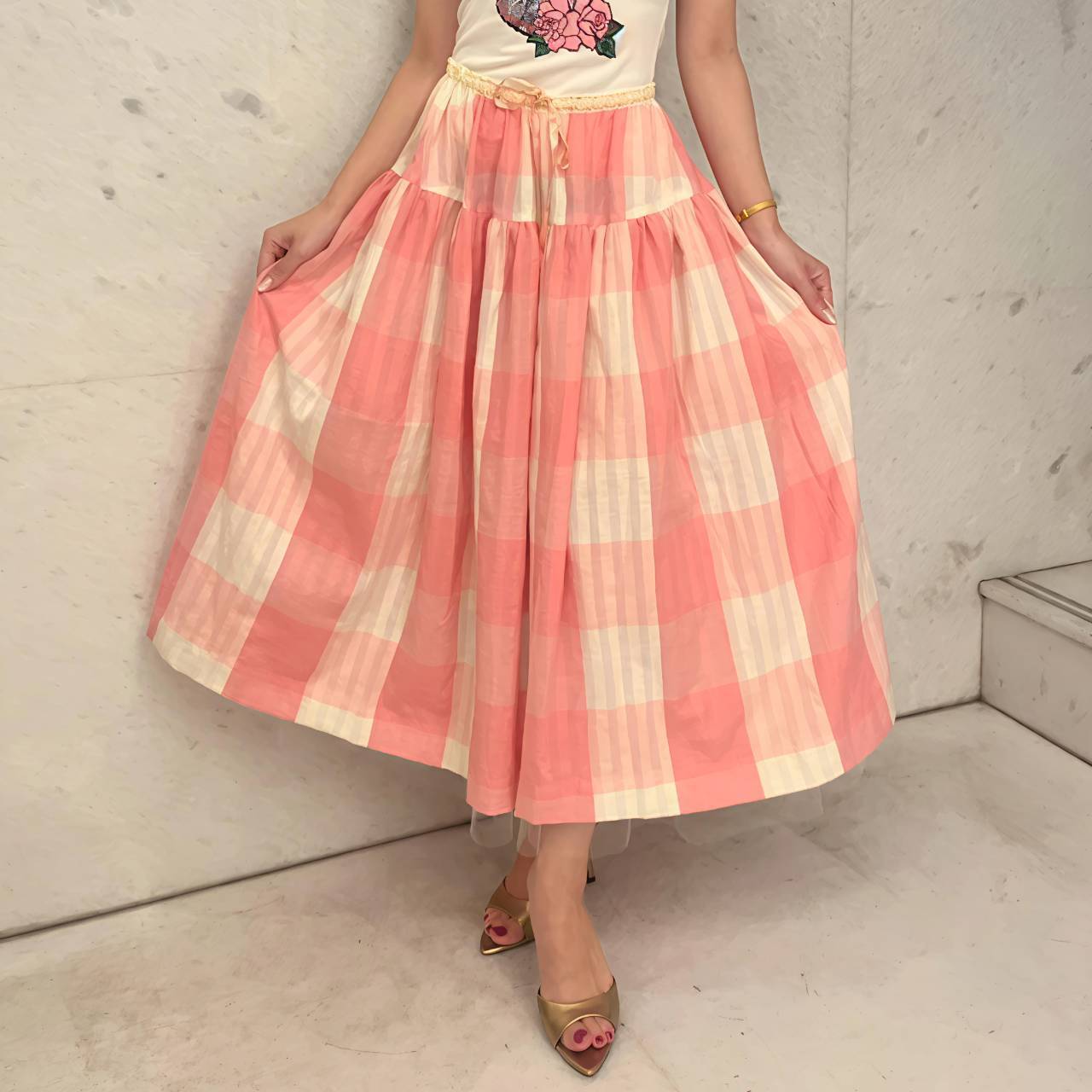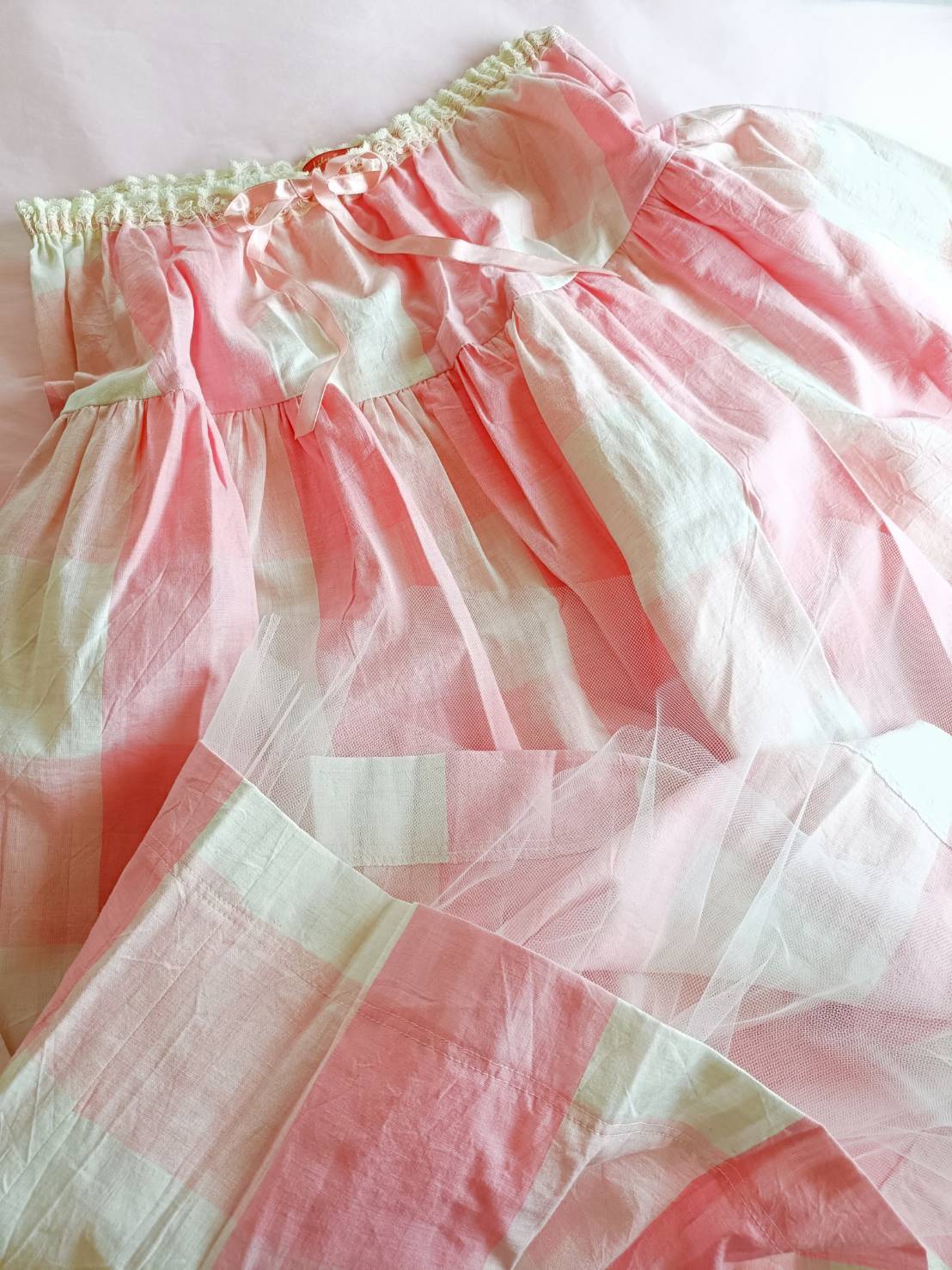 1点限定♡大きなブロックチェック柄がノスタルジックなペチコートです。ウエスト切り替えの下部分からチュールが内蔵されているので、1枚で履くだけでチュチュのようにふんわりとしたシルエットが叶います♪