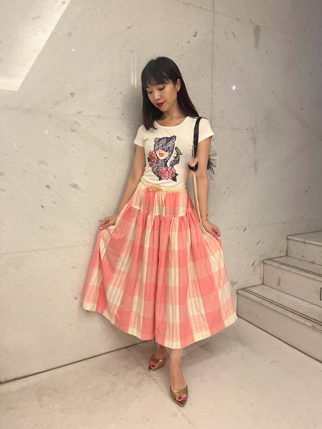 さらっとしたリネン素材が軽やかで、子供っぽくならないのも魅力。バレエシューズなどを合わせれば、大人のロマンティックスタイルを楽しめます♡
