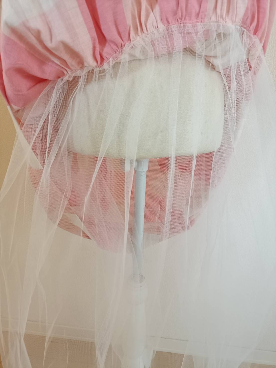 【サイズ】ウエスト64cm〜(ゴムとリボンで調節可能)、着丈82cm