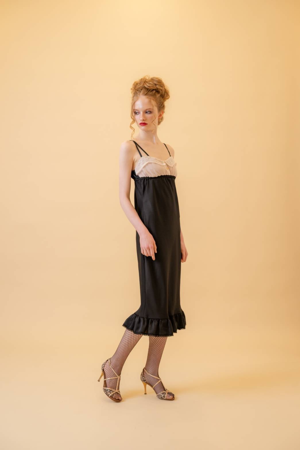 ランジェリーとしてはもちろん、ドレスとしてもお召いただける完成度の高いスリップです。