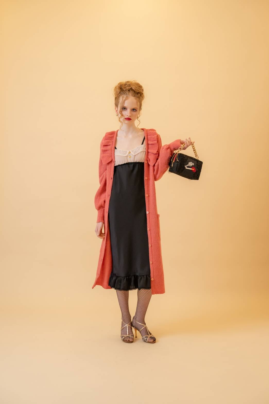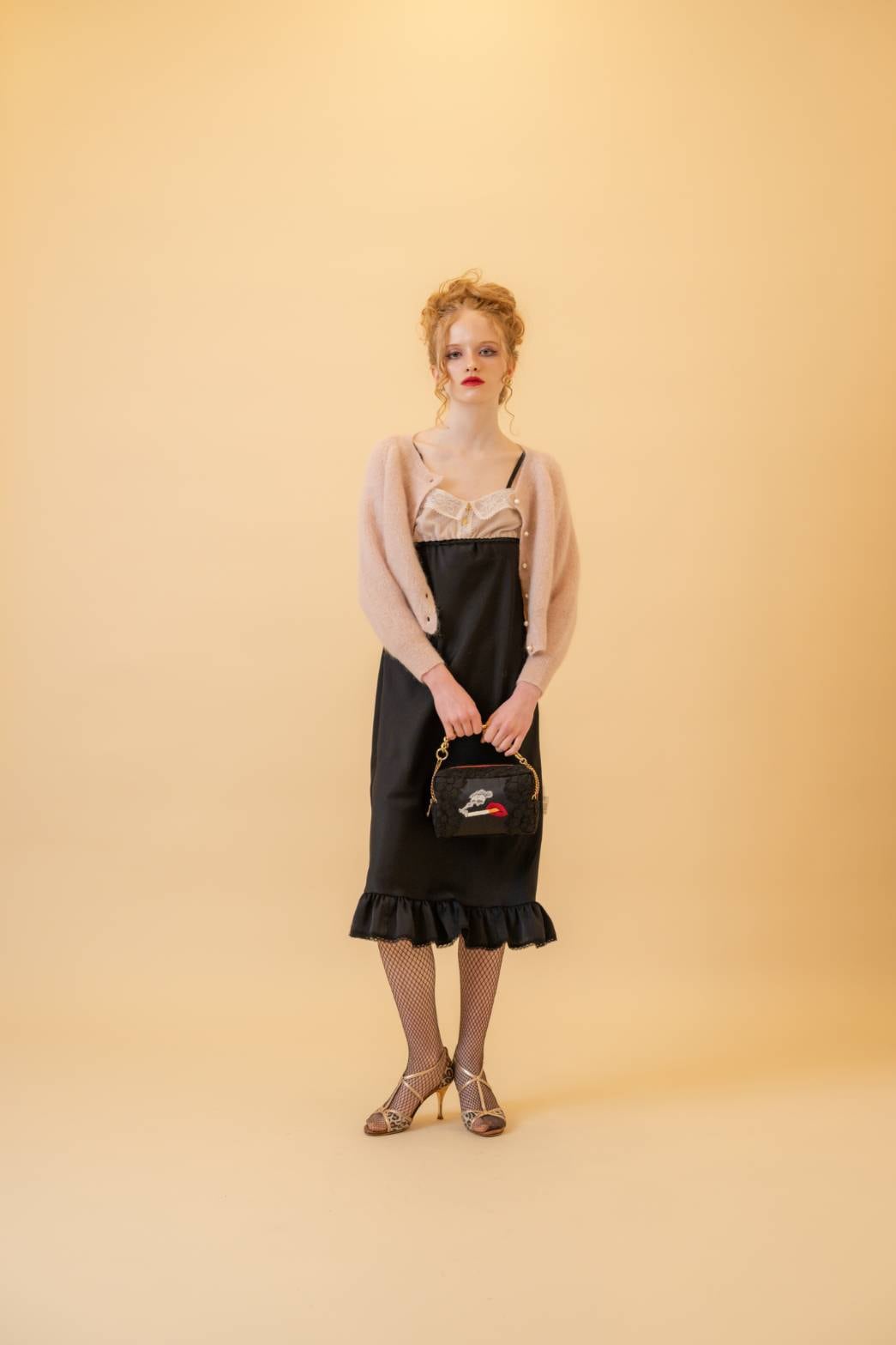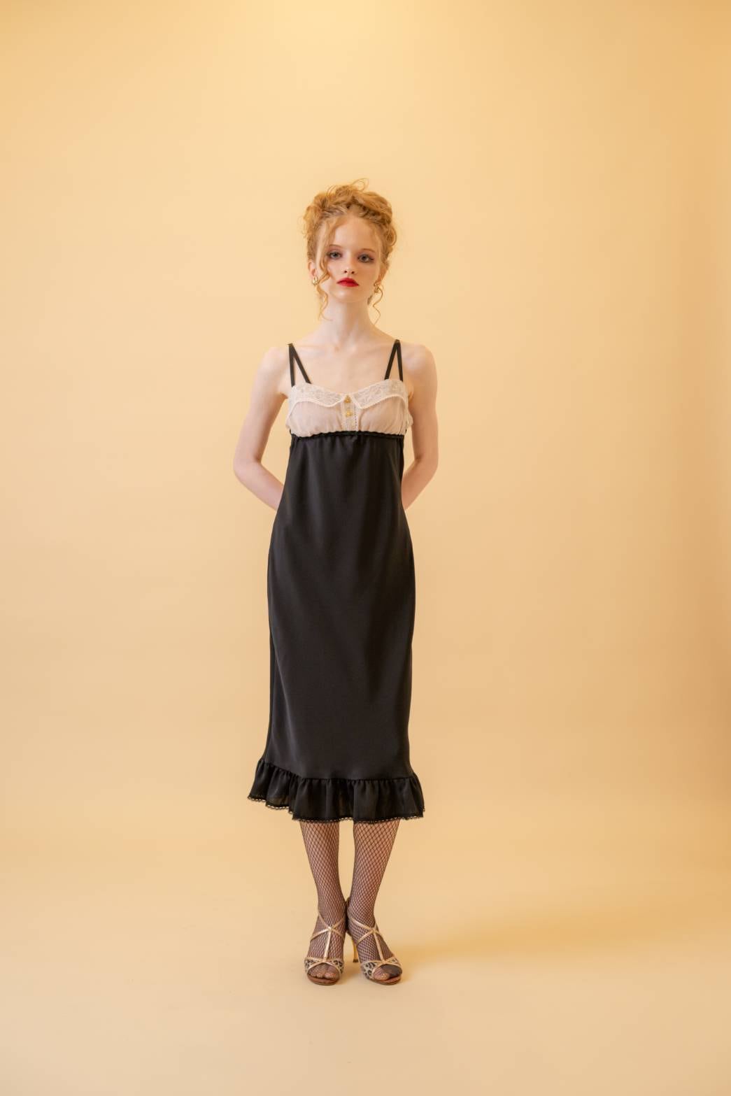 定番のナイトタイムランデブースリップドレスがさらに洗練された形で再登場いたしました!丈感もロングになり、胸元に襟やボタンのモチーフががついたハンサムなデザインに♡