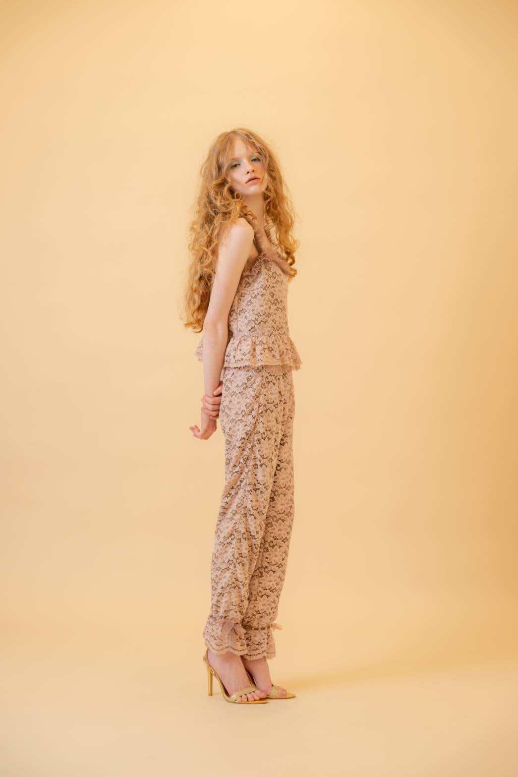 カラーは3色。モデルが着用しているピンクレース生地は、画像3&4枚目、最後のスタッフが着用しているのピンクレースへ変更となります。ややくすんだダスティピンクがフェミニン♡