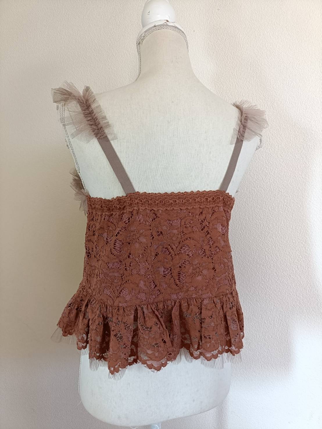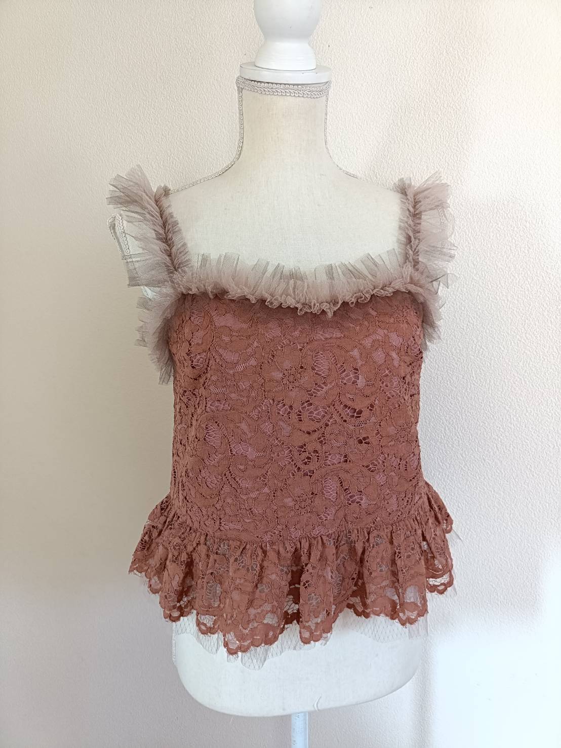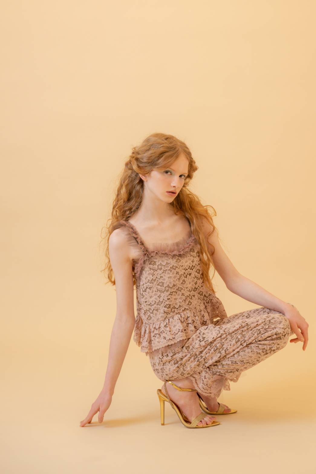 セットアップスタイルが叶う、パピーキャミソール♡レースとチュールがたっぷりなリリィらしいデザイン。着こなし次第でオールシーズンお召し頂けます。