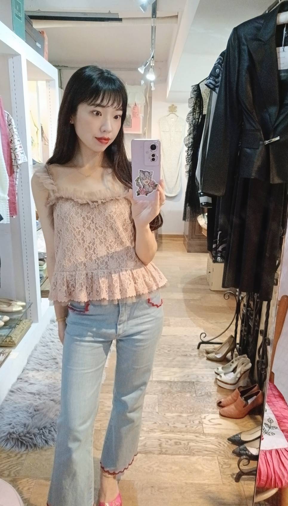 コンパクトなシルエット、ふわっと広がる裾のフリル、細やかなあしらいがリリィにしかないキャミソール。ぜひパンツとセットアップで着こなしてください♡