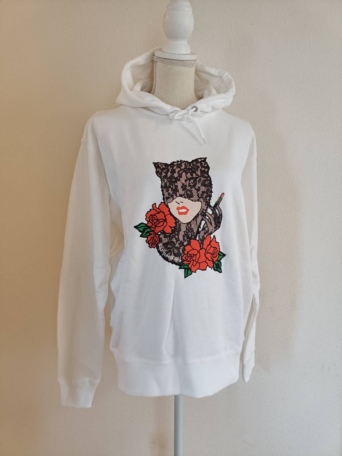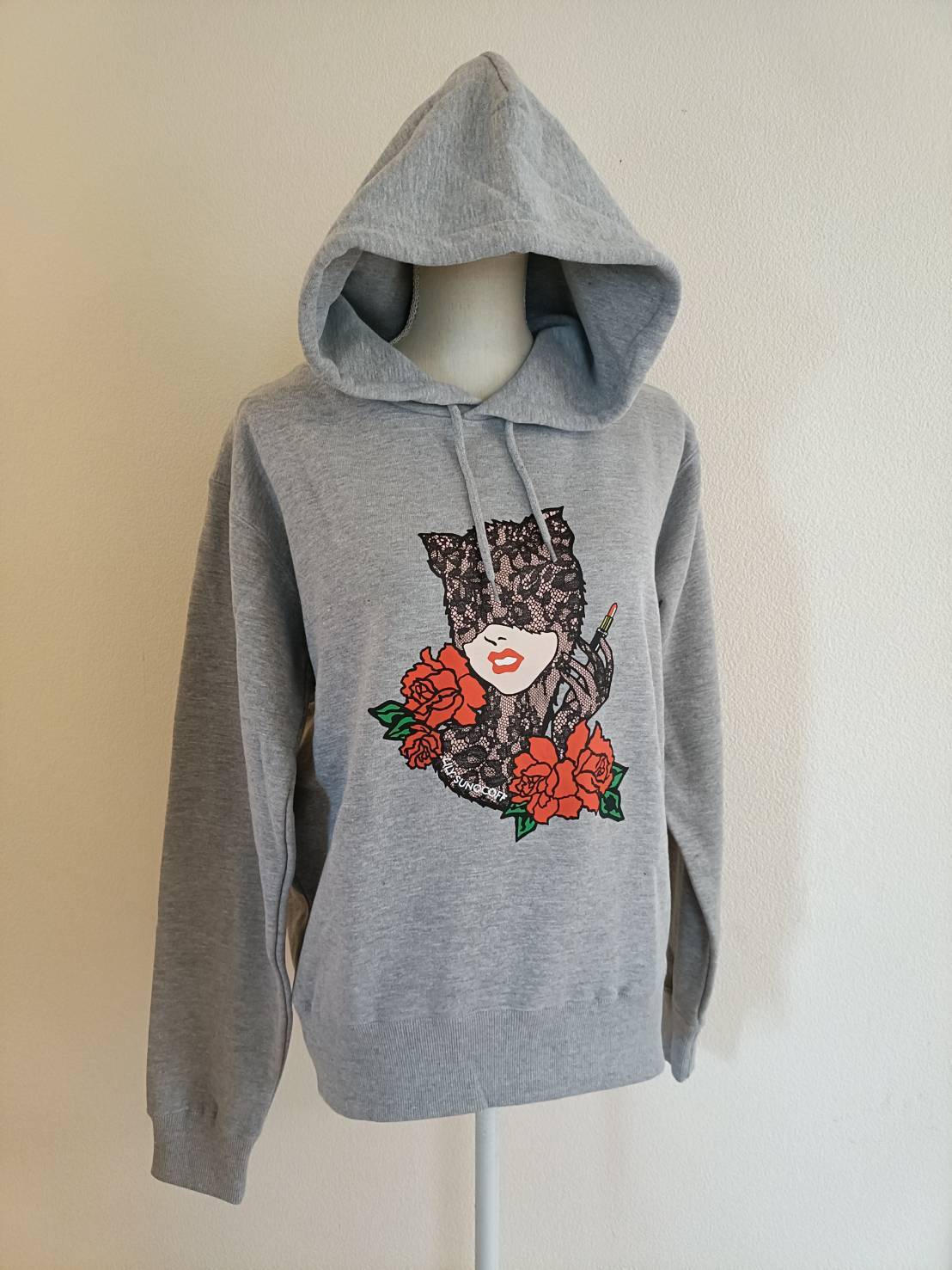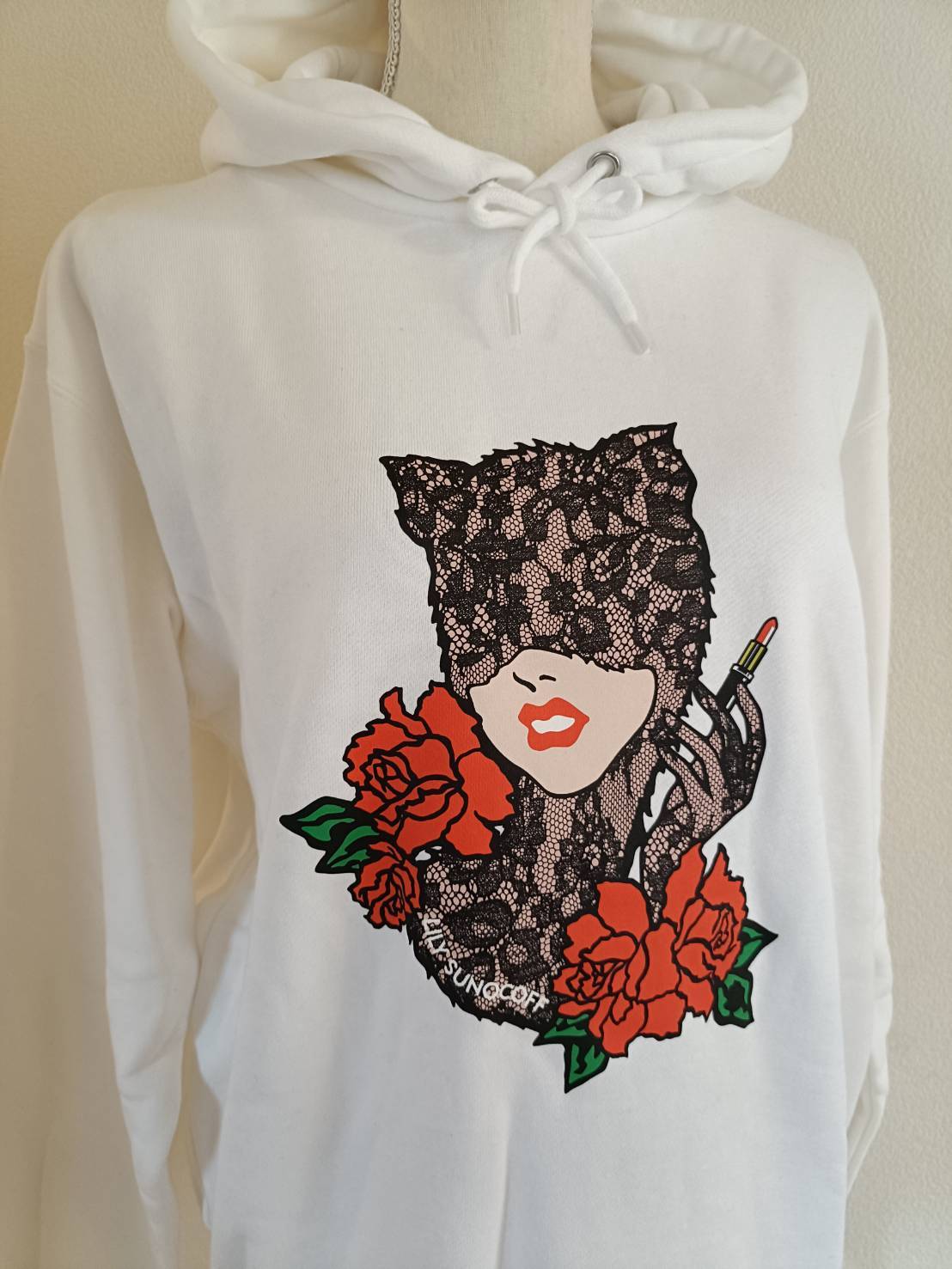 プリントはリップスティックを手にしたレッドローズのキャットウーマンと、バタフライが舞うピンクローズキャットウーマン。お好きな組み合わせを見つけてくださいね。