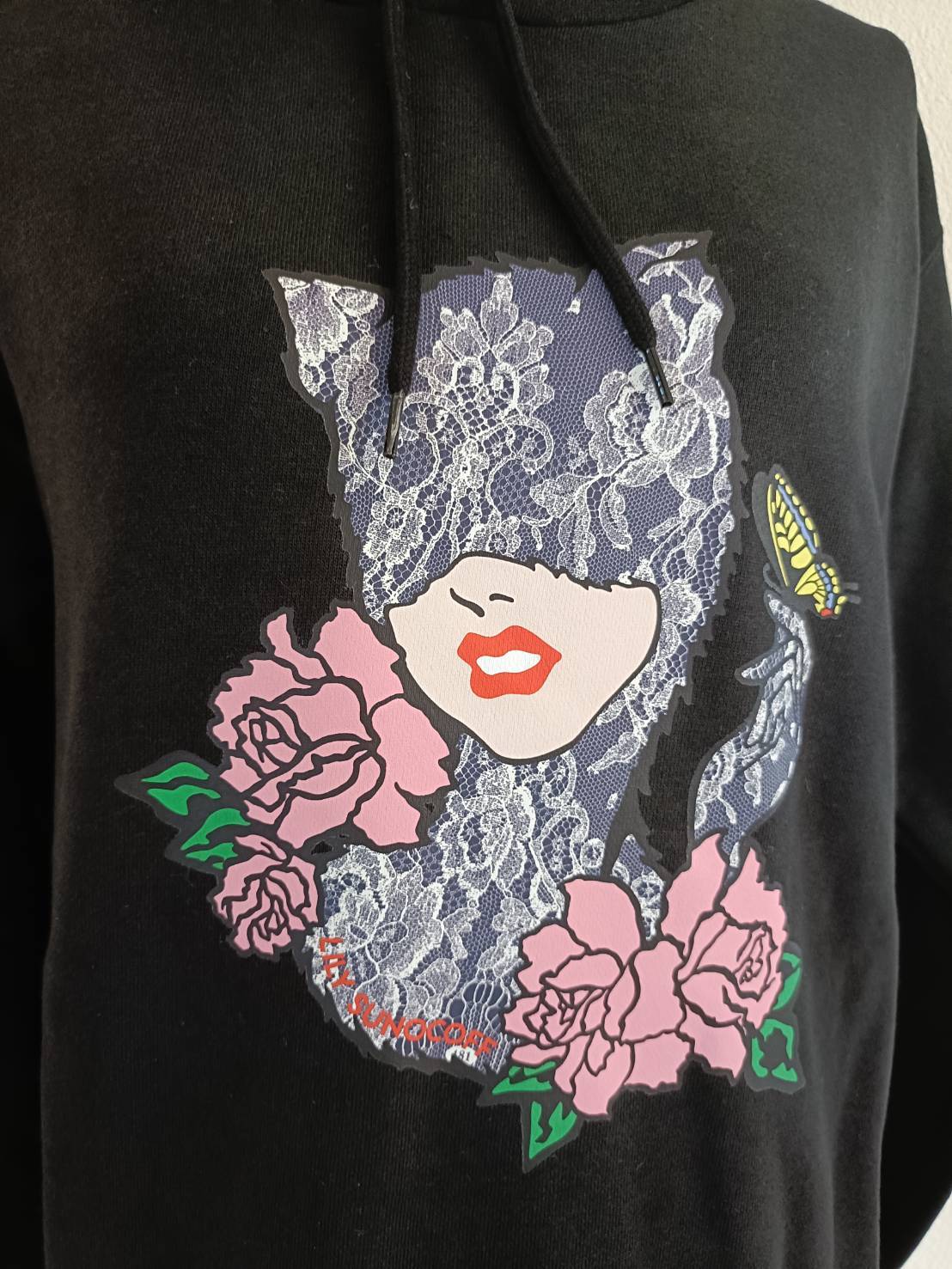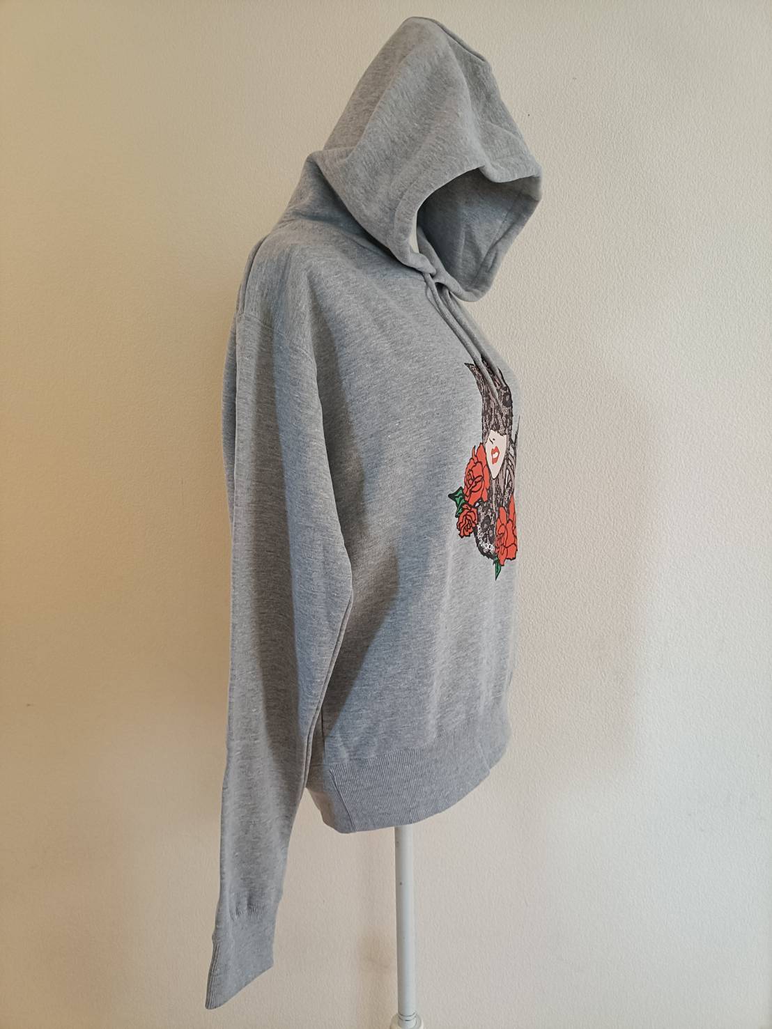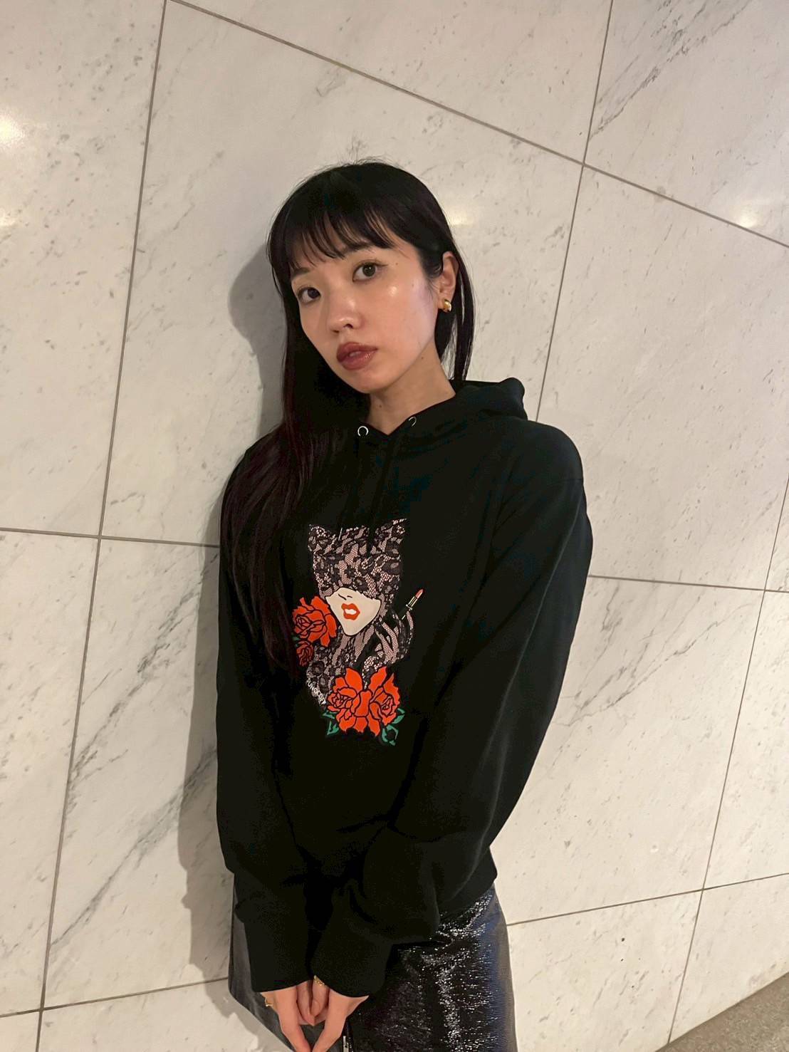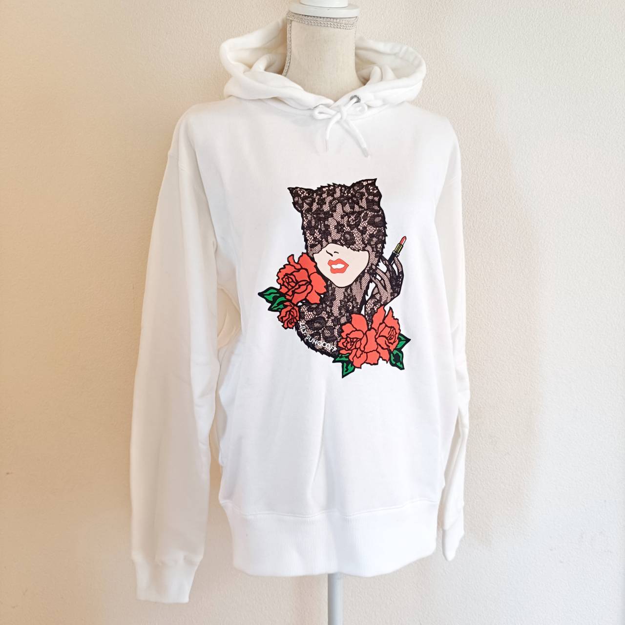 ヘビーローテーション間違いなしな、ネオンローズプリントのフード付きスウェット。しっかりと厚みのある素材で暖かく、着心地の良いアイテムです。フードは2枚仕立てでふんわりとしたシルエットが出ます。